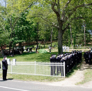 On Wednesday May 22nd, we laid to rest Ex-Captain Charles E. Duffy who had served the Smithtown community for 50 years. Gathered together were his family and friends to pay a final tribute. A funeral mass was held at St Patrick's Church followed by a procession past the family home, Engine Co. 5's station on Plymouth Blvd and then the Main Firehouse on Elm Ave. At the Main House an arch was raised and Capt. Duffy was brought past the firehouse for a final time. The procession then continued to the cemetery for burial, where his fellow members gave their final salute.